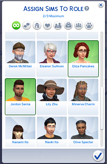 Если у вас нет симов на примете, вы можете выбрать «Общее количество симов» и задать любое число, а игра автоматически подберет симов с соответствующими характеристиками и распределит их по ролям.