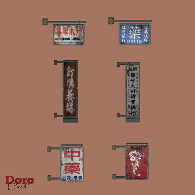 Store Signs You get 6 signs in 2 swatches. (English/Chinese)